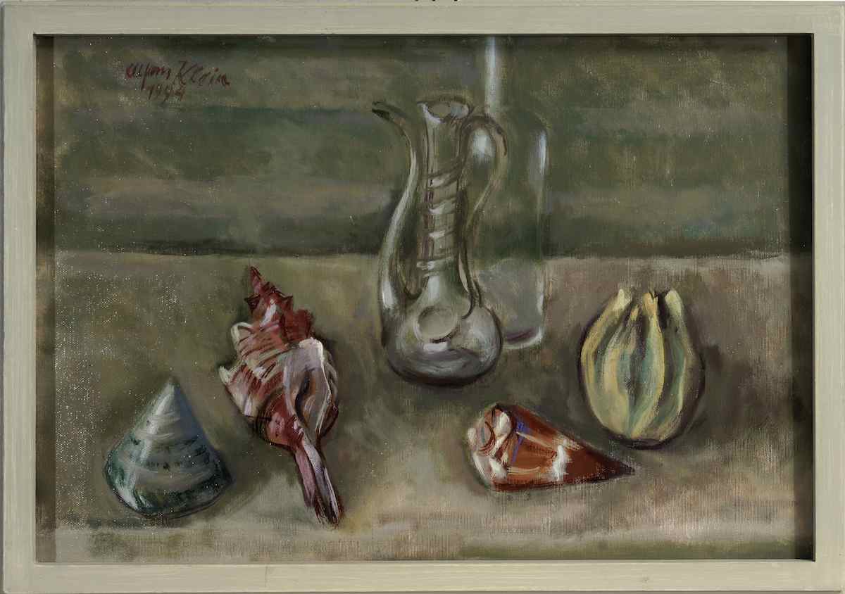 1994 Glaskaraffe, Flasche, Kürbis und Muscheln (56x38) #022