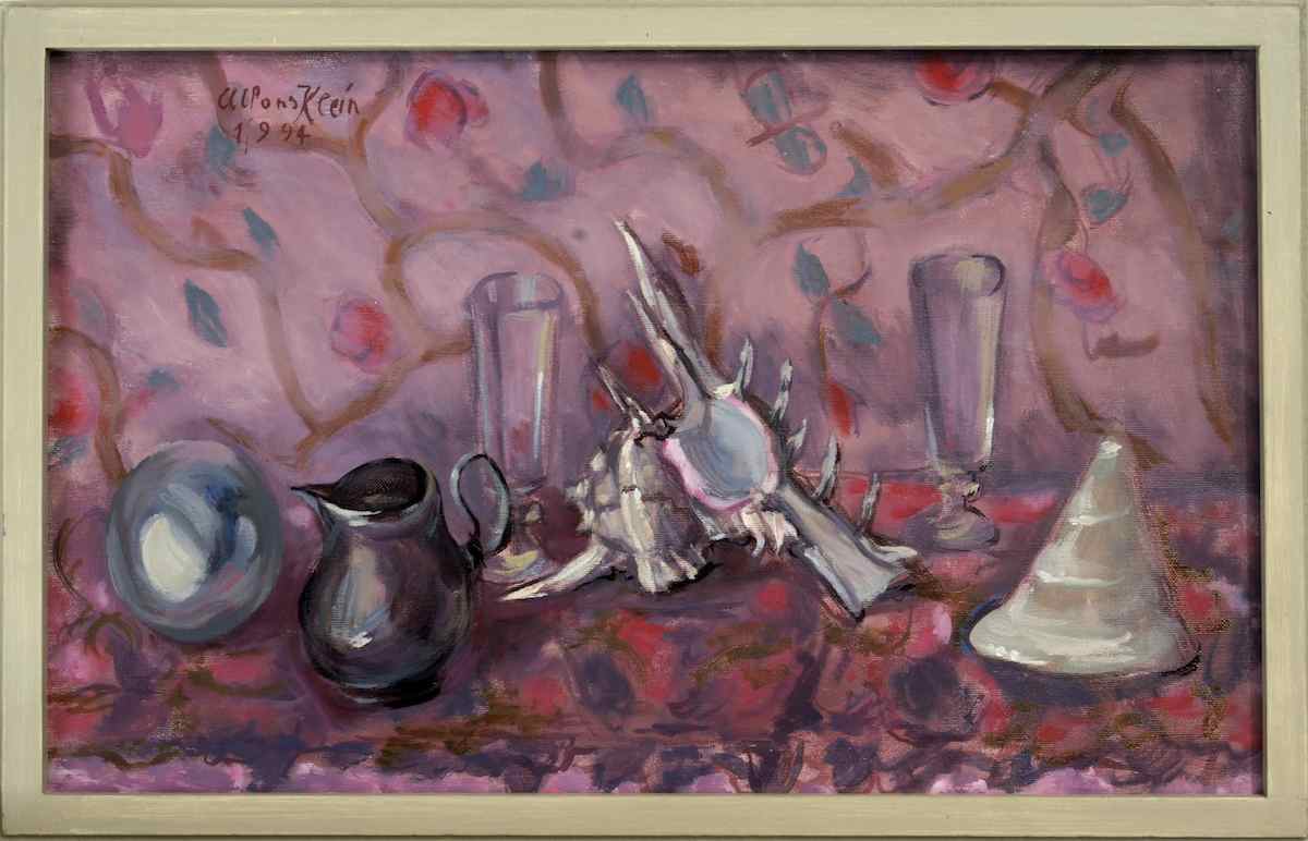 1994 Zwei Muscheln, Silberkugel, Silberkännchen und zwei Gläser (61x38) #245