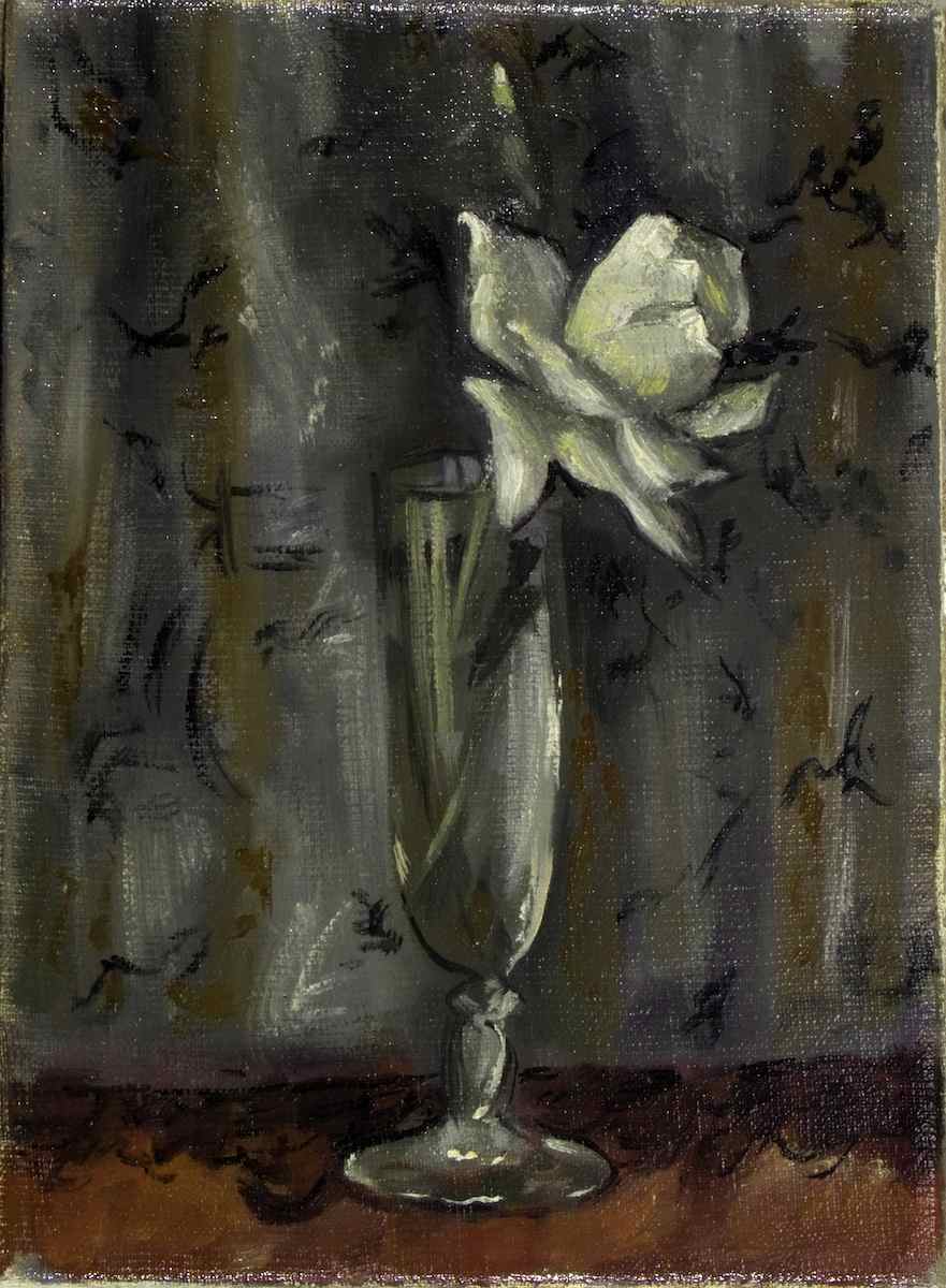 1996 Rose im Glas vor japanischem Stoff - Einsame Rose (24x33)