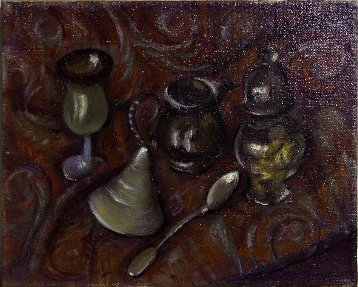 1998 Silberkännchen, Bonboniere, Löffel auf rot (41x33) #065