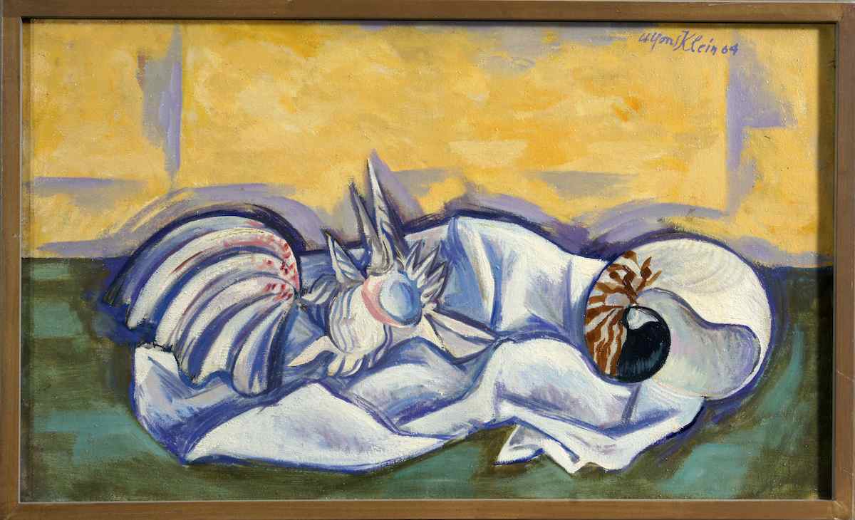 1964 Muscheln, Nautilus auf weißem Tuch (77x46) #376