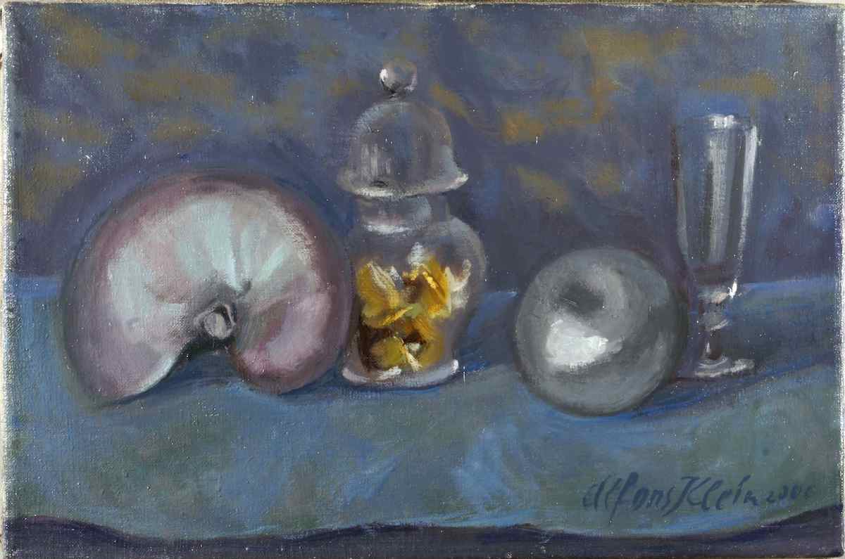 2000 Nautilus, Bonboniere, Silberkugel und Glas auf blau (41x27) #099