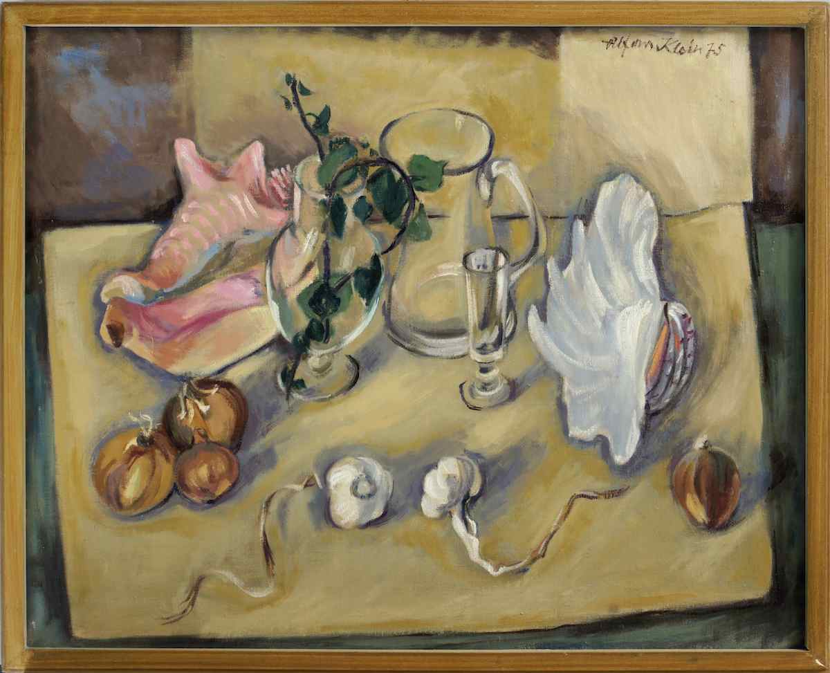 1975 Muscheln, Gläser, Zwiebeln auf gelb (75x60) #289