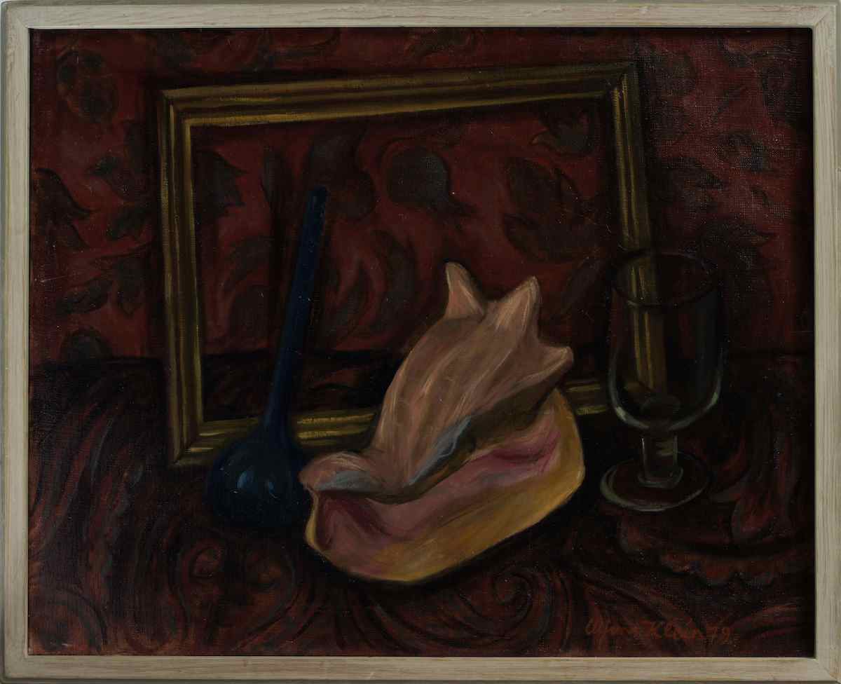 1979 Muscheln, Gläser vor Bilderrahmen (66x54) #295