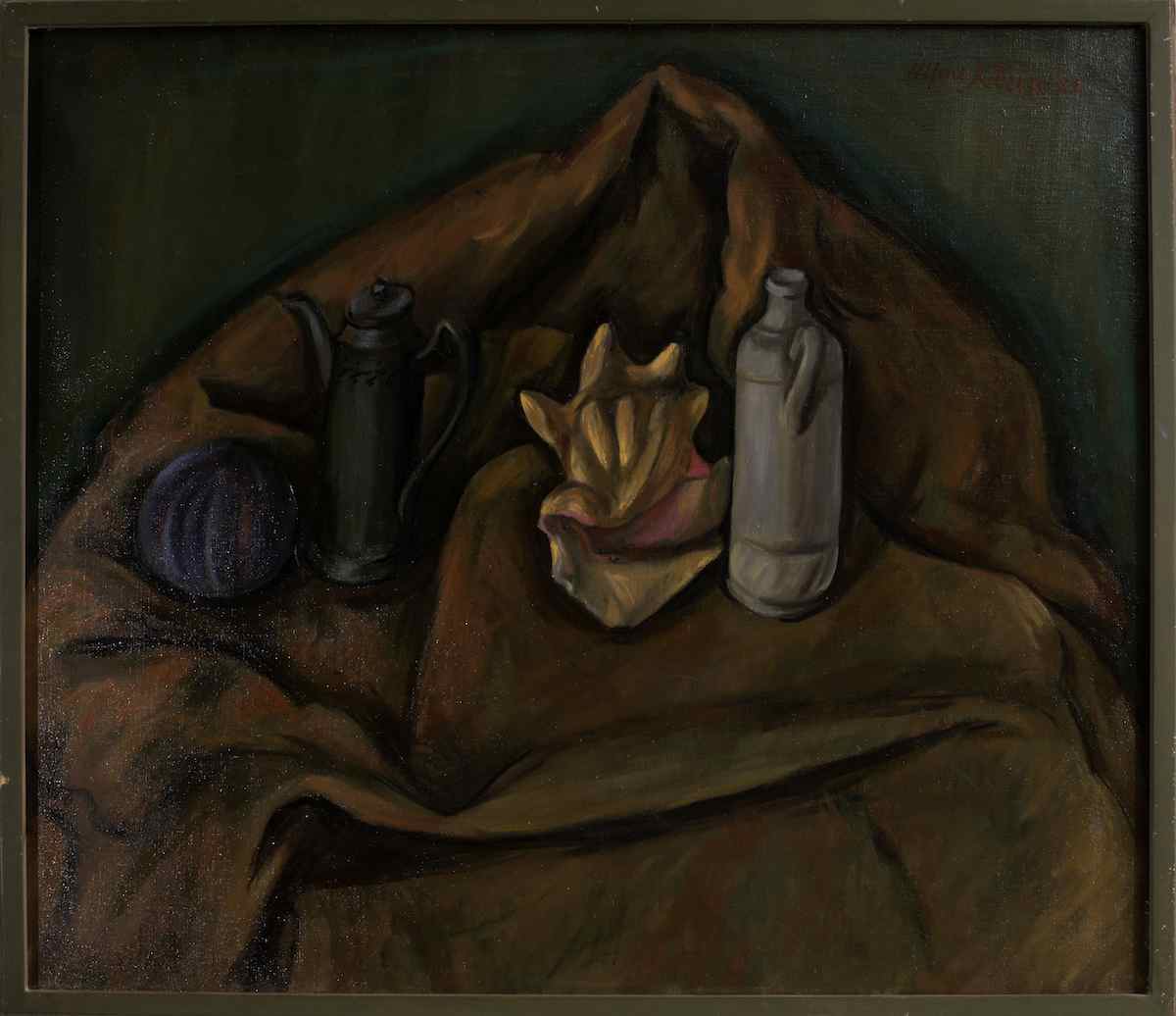 1981 Zinnkanne, Seeigel, Muschel, und weißer Ölkrug (88x76) #349
