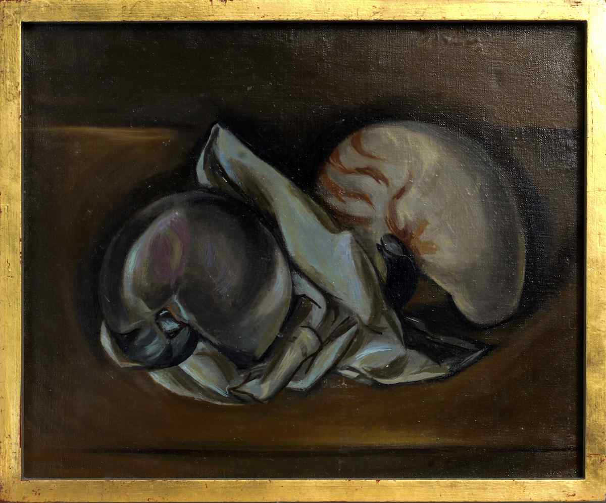 1982 Zwei Nautili und Tuch auf Ocker (45x37) #001